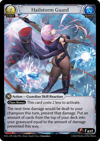 The next time damage would be dealt to your champion this turn, prevent that damage. Put an amount of cards from the top of your deck into your graveyard equal to the amount of damage prevented this way.