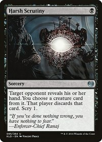 Target opponent reveals his or her hand. You choose a creature card from it. That player discards that card. Scry 1.