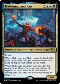 When Hidetsugu and Kairi dies, exile the top card of your library. Target opponent loses life equal to its mana value. If it's an instant or sorcery card, you may cast it without paying its mana cost.