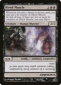 Whenever you play a Spirit or Arcane spell, you may put a ki counter on Hired Muscle.