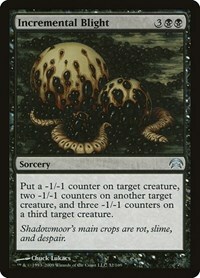 Put a -1/-1 counter on target creature, two -1/-1 counters on another target creature, and three -1/-1 counters on a third target creature.