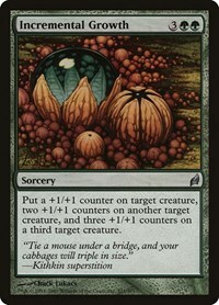 Put a +1/+1 counter on target creature, two +1/+1 counters on another target creature, and three +1/+1 counters on a third target creature.