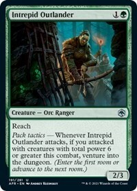 Pack tactics — Whenever Intrepid Outlander attacks, if you attacked with creatures with total power 6 or greater this combat, venture into the dungeon. (Enter the first room or advance to the next room.)