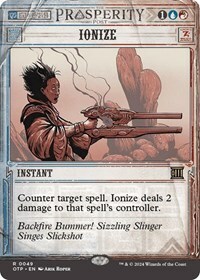 Counter target spell. Ionize deals 2 damage to that spell's controller.