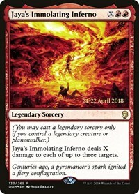 Jaya's Immolating Inferno deals X damage to each of up to three targets.