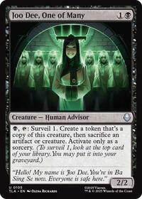 B, T: Surveil 1. Create a token that's a copy of this creature, then sacrifice an artifact or creature. Activate only as a sorcery. (To surveil 1, look at the top card of your library. You may put it into your graveyard.)