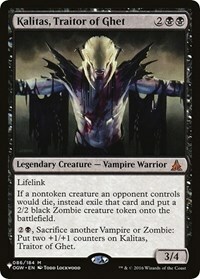 2B, Sacrifice another Vampire or Zombie: Put two +1/+1 counters on Kalitas, Traitor of Ghet.
