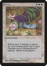 For each swamp in play, Karma does 1 damage to the swamp owner during the swamp owner’s upkeep.