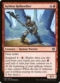 Suspend 4—R (Rather than cast this card from your hand, you may pay R and exile it with four time counters on it. At the beginning of your upkeep, remove a time counter. When the last is removed, cast it without paying its mana cost. It has haste.)
