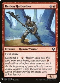 Suspend 4—R (Rather than cast this card from your hand, you may pay R and exile it with four time counters on it. At the beginning of your upkeep, remove a time counter. When the last is removed, cast it without paying its mana cost. It has haste.)