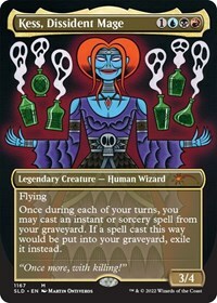 Once during each of your turns, you may cast an instant or sorcery spell from your graveyard. If a spell cast this way would be put into your graveyard, exile it instead.