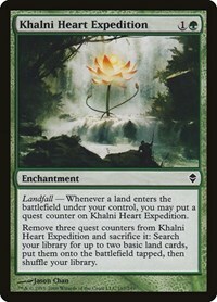 Landfall — Whenever a land enters the battlefield under your control, you may put a quest counter on Khalni Heart Expedition.