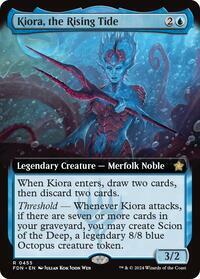Threshold — Whenever Kiora attacks, if there are seven or more cards in your graveyard, you may create Scion of the Deep, a legendary 8/8 blue Octopus creature token.