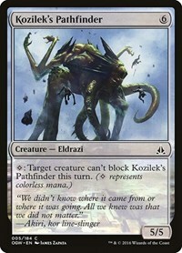 C: Target creature can't block Kozilek's Pathfinder this turn. (C represents colorless mana.)