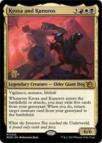 Whenever Kroxa and Kunoros enters the battlefield or attacks, you may exile five cards from your graveyard. When you do, return target creature card from your graveyard to the battlefield.