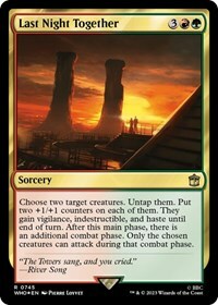 Choose two target creatures. Untap them. Put two +1/+1 counters on each of them. They gain vigilance, indestructible, and haste until end of turn. After this main phase, there is an additional combat phase. Only the chosen creatures can attack during that combat phase.