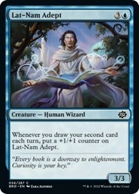 Whenever you draw your second card each turn, put a +1/+1 counter on Lat-Nam Adept.
