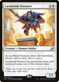 Lavabrink Venturer has protection from each converted mana cost of the chosen value.
