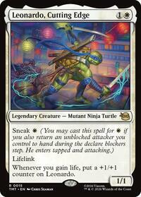 Whenever you gain life, put a +1/+1 counter on Leonardo.