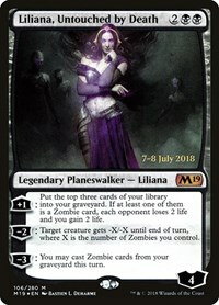 [+1]: Put the top three cards of your library into your graveyard. If at least one of them is a Zombie card, each opponent loses 2 life and you gain 2 life.