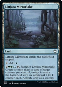 2GGU, T, Sacrifice Littjara Mirrorlake: Create a token that's a copy of target creature you control, except it enters the battlefield with an additional +1/+1 counter on it. Activate this ability only any time you could cast a sorcery.