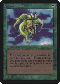 Put a counter on target artifact for each life you lose. During upkeep you may trade one counter for one life, but you can only trade in one counter each turn.
