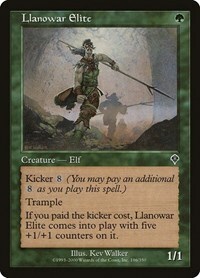 If you paid the kicker cost, Llanowar Elite comes into play with five +1/+1 counters on it.