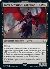 Whenever a creature card is put into an opponent's graveyard from anywhere, you may pay life equal to its mana value. If you do, put it onto the battlefield under your control. It's a Warlock in addition to its other types.