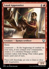 Lieutenant — At the beginning of combat on your turn, if you control your commander, create a 1/1 colorless Thopter artifact creature token with flying. That token gains haste until end of turn.
