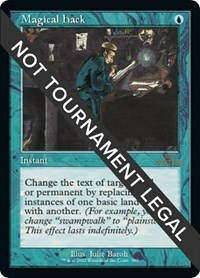 Change the text of target spell or permanent by replacing all instances of one basic land type with another. (For example, you may change “swampwalk” to “plainswalk.”
