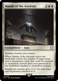 When Mantle of the Ancients enters the battlefield, return any number of target Aura and/or Equipment cards from your graveyard to the battlefield attached to enchanted creature.