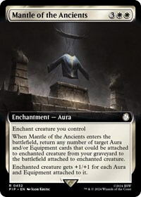 When Mantle of the Ancients enters the battlefield, return any number of target Aura and/or Equipment cards from your graveyard to the battlefield attached to enchanted creature.
