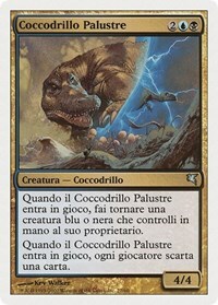 When Marsh Crocodile enters the battlefield, return a blue or black creature you control to its owner’s hand.