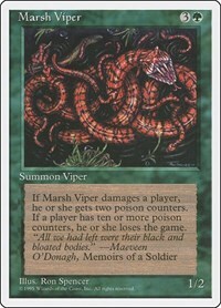 If Marsh Viper damages a player, he or she gets two poison counters. If a player has ten or more poison counters, he or she loses the game.