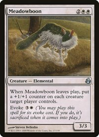 When Meadowboon leaves play, put a +1/+1 counter on each creature target player controls.