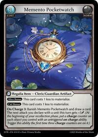On Charge 3: Banish Memento Pocketwatch and draw a card. The next attack you declare with a unit this turn gets +3 power. (At the beginning of your recollection phase, put a charge counter on each object you control with an untriggered on charge ability. Trigger this ability the first time three charge counters are on it.)