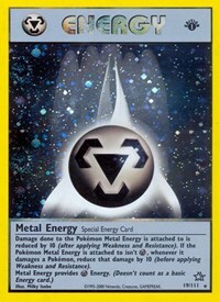 Damage Done To The Pokémon Metal Energy Is Attached To Is Reduced By 10 (after Applying Weakness And Resistance). If The Pokémon Metal Energy Is Attached To Isn't Metal, Whenever It Damages A Pokémon, Reduce That Damage By 10 (before Applying Weakness And Resistance). Metal Energy Provides Metal Energy. (doesn't Count As A Basic Energy Card.)