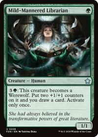 3G: This creature becomes a Werewolf. Put two +1/+1 counters on it and you draw a card. Activate only once.