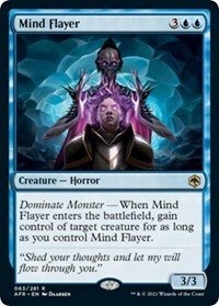 Dominate Monster — When Mind Flayer enters the battlefield, gain control of target creature for as long as you control Mind Flayer.