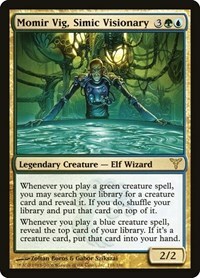 Whenever you play a green creature spell, you may search your library for a creature card and reveal it. If you do, shuffle your library and put that card on top of it.