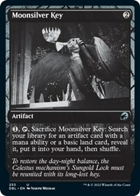 1, T, Sacrifice Moonsilver Key: Search your library for an artifact card with a mana ability or a basic land card, reveal it, put it into your hand, then shuffle.
