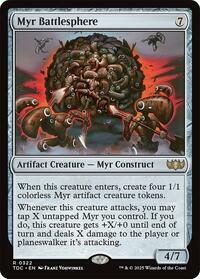 When this creature enters, create four 1/1 colorless Myr artifact creature tokens.