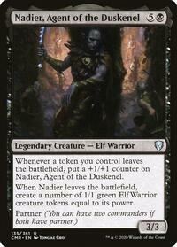 Whenever a token you control leaves the battlefield, put a +1/+1 counter on Nadier, Agent of the Duskenel.