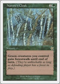 Green creatures you control gain forestwalk until end of turn. (They’re unblockable as long as defending player has a forest in play.)