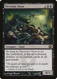 As long as Necrotic Ooze is on the battlefield, it has all activated abilities of all creature cards in all graveyards.