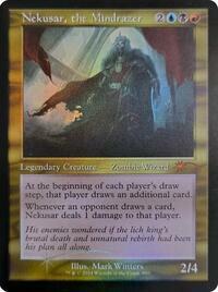 Whenever an opponent draws a card, Nekusar deals 1 damage to that player.