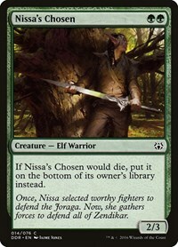 If Nissa's Chosen would die, put it on the bottom of its owner's library instead.