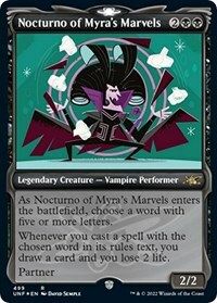 As Nocturno of Myra's Marvels enters the battlefield, choose a word with five or more letters.