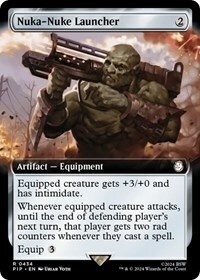 Whenever equipped creature attacks, until the end of defending player's next turn, that player gets two rad counters whenever they cast a spell.