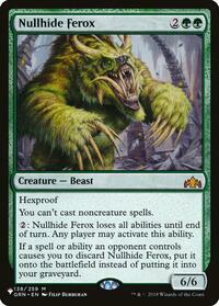 If a spell or ability an opponent controls causes you to discard Nullhide Ferox, put it onto the battlefield instead of putting it into your graveyard.